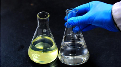 生物航煤“长”的啥样?黄色的是93号汽油,白色的就是生物航煤。