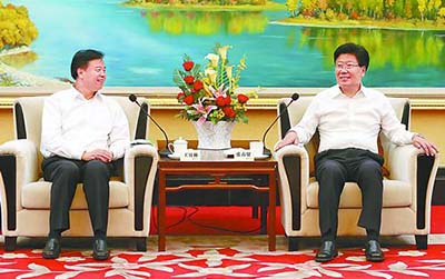 张春贤(右)与王宜林会谈。