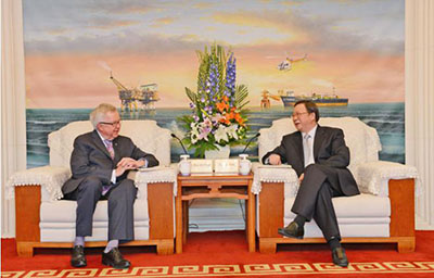 5月29日上午,总公司董事长杨华在北京中国海油大厦会见了来访的加拿大前联邦总理乔·克拉克,双方就中国海油在加拿大和其他海外地区的业务发展等话题交换了意见。加拿大驻华大使赵朴参加会见。(记者满毅)