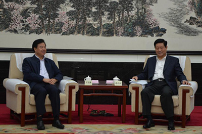 王宜林在赴驻陕西石油企业调研期间,与陕西省委书记赵正永、省长娄勤俭举行会谈。记者孟庆璐摄
