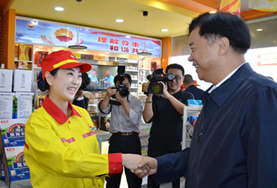 王宜林到陕西销售调研,与加油站销售冠军交谈。记者孟庆璐摄
