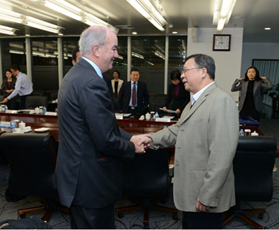 11月5日上午,总公司董事长杨华在北京中国海油大厦会见了来访的伍德麦肯兹公司能源行业主席David Morrison一行,双方就全球能源形势的发展及变化交换了意见。