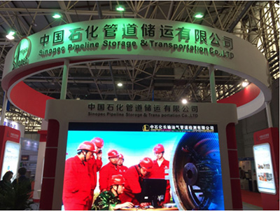 在展览大厅,中国石化管道储运有限公司的展位,在中国石化“朝阳商标”和“满天星商标”的映衬下显得格外醒目,简单明了、干净整洁,集中展示了管道公司在油气储运领域拥有的完整产业链优势,主要涵盖设计(EPC)、采办、施工、运营管理、维抢修和管道科研方面等方面的实力。
