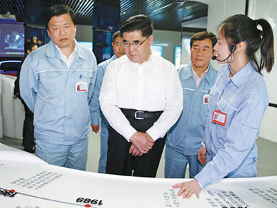 图2:4月19日,王玉普一行到长岭炼化炼油第一作业部中心控制室调研。