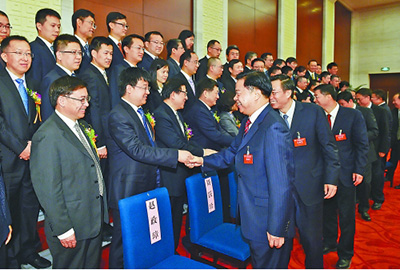 集团公司科技与信息化创新大会提出,不断激发强大的创新活力和潜力,激励广大员工积极投身创新创造。图为集团公司党组领导接见获奖代表。