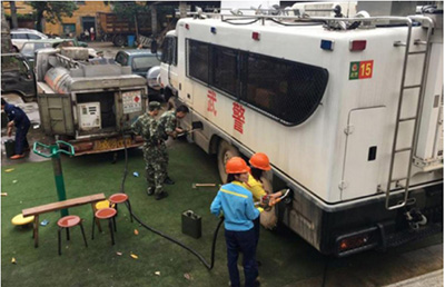 9日7时三明市武警支队陈凯警官来电请求优先保障,中石油三明油库紧急调整2865升汽油、5785升柴油输送到武警救援部队。