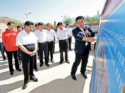 6月13日,集团公司董事长、党组书记王玉普在甘肃省副省长杨子兴陪同下,专程来到中国石化定点扶贫县——甘肃临夏州东乡族自治县,查看公司帮扶布楞沟流域脱贫项目实施情况,对前期工作给予充分肯定,要求坚决贯彻落实习近平总书记关于扶贫工作的指示精神,切实履行好中央企业的社会责任,把精准扶贫工作向纵深推进,让东乡人民早日过上好日子,坚决防止“返贫”情况出现。