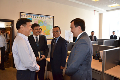 随后,王宜林一行来到国际事业哈萨克斯坦公司(SINOOIL)2号加油站调研。公司负责人向王宜林详细汇报了在哈萨克斯坦成品油销售和非油品营销业务开展情况。这个加油站是一个2万吨级加油站,2014年被评为“中亚地区最优加油站”。现在,SINOOIL在当地已经有了很高的品牌知名度和影响力,受到哈萨克斯坦人民的喜爱。目前,这个公司成品油零售市场份额占哈萨克斯坦全国成品油零售市场的14%。