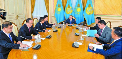 王宜林在阿斯塔纳拜会哈萨克斯坦总统纳扎尔巴耶夫。