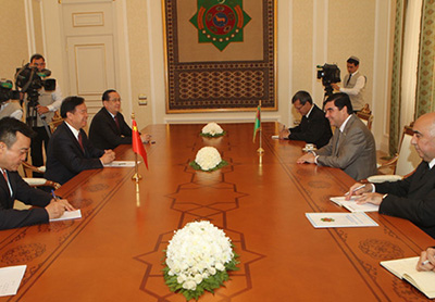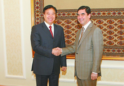 7月8日上午,王宜林与土库曼斯坦总统别尔德穆哈梅多夫会谈。