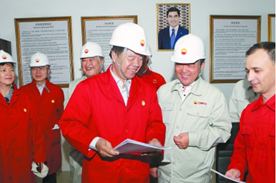 王宜林董事长在阿姆河第一天然气处理厂调研,了解生产运行情况。孟庆璐摄
