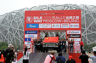 2016丝绸之路国际汽车拉力赛于7月8日从俄罗斯莫斯科红场出发,车手们穿越三个国家经过17天的激烈比赛,跨越了10700公里,其中近4000多公里的15个特殊赛段,包括了蜿蜒盘旋的高速公路、绵延不绝的大草原,还有一望无际的沙丘以及举步维艰的荒原。所有车手战胜种种挑战,在北京齐聚一堂,依次驶入满载荣耀的收车台。国家体育总局局长刘鹏致辞表示“本次拉力赛的圆满落幕,为全世界带来了一场速度与激情的较量,续写了两国之间的友谊篇章,也将互利共赢的古丝绸之路精神再度传承发扬,共同造福国家和人民!”