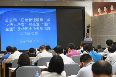 本报讯(记者陈雷)8月10日上午,总公司召开“压缩管理层级、减少法人户数”和处置“僵尸企业”及特困企业专项治理工作启动会,贯彻落实中央改革要求及工作部署,确保总公司按照国资委要求完成任务。