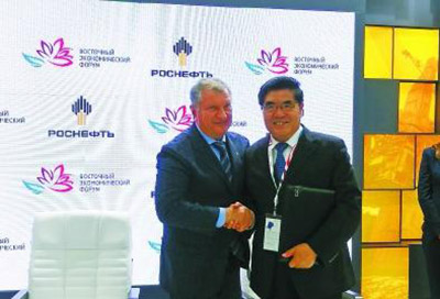 北京时间9月2日,在俄罗斯远东经济论坛上,中国石化与俄罗斯石油公司(俄石油)签署一份具有约束力的协议,共同开展俄罗斯东西伯利亚天然气加工和石化综合设施项目的预可行性研究工作。集团公司董事长王玉普和俄石油首席执行官伊戈尔·谢钦(IgorSechin)代表双方签署协议。