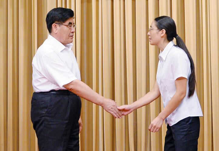 报告会上,王玉普对陈鹏龙同志妻子万正艳表示慰问。记者程阳摄