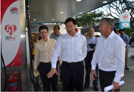 19日下午,王宜林来到中国石油联邦大道加油站调研,详细听取新加坡石油公司(SPC)有关负责人的介绍。SPC是国际事业(新加坡)公司的全资子公司,目前在新加坡拥有SPC品牌加油站40余座,加油站数量和汽柴油零售业务市场份额均占到20%以上,SPC已成为当地家喻户晓的知名品牌。王宜林勉励该公司员工要进一步提升服务质量,加强与国内加油站的沟通交流,共同提高管理水平,树立中国石油良好的品牌形象。