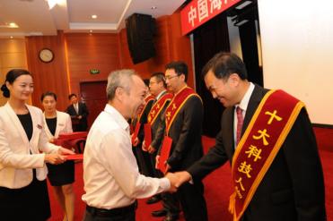 刘健为中国海油“十二五”十大科技人物获奖代表颁奖。(张远高摄)