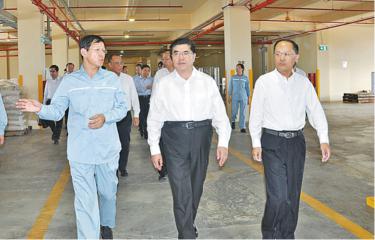 图为王玉普在润滑油公司新加坡工厂调研。