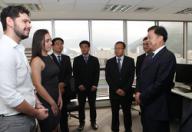 王宜林在巴西调研期间,到中国石油拉美(巴西)公司调研,看望中外方员工。