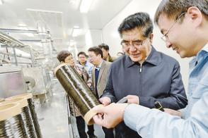 王玉普在上海石油化工研究院碳纤维及其复合材料重点实验室(联合)调研,与一线科技工作者沟通交流。