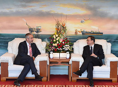 12月8日上午,总公司董事长杨华在北京中国海油大厦会见了壳牌集团首席财务官西蒙·亨利一行,双方就深化两公司全球战略合作伙伴关系交换了意见。