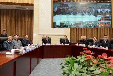 杨华一行首先来到渤海石油管理局应急指挥中心。通过视频连线,杨华与蓬莱19-3CPC平台、绥中36-1CEP平台、秦皇岛32-6CEPI平台、埕北油田B平台、“海洋石油922”钻井船、“海洋石油112”FPSO和“蓝鲸”号作业船上的员工们一一通话。他详细询问各装置节前的生产、生活安排和安全工作情况,并重点了解了海上党建工作现状及成效。