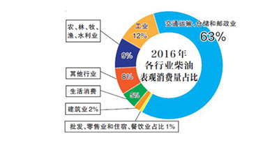 2016年,我国柴油表观消费量估为1.63亿吨,增速较上年降低5.7个百分点