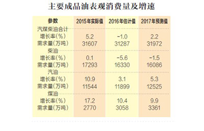2017年,我国成品油表观需求量估达3.20亿吨,净出口将超4000万吨