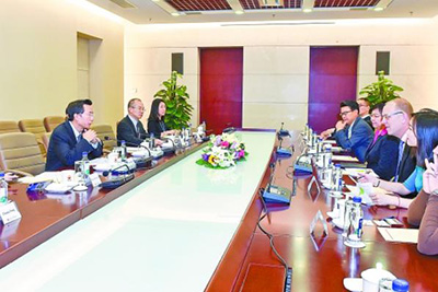 汪东进会见BP集团亚太区油品首席运营官安迪·侯姆斯(图)