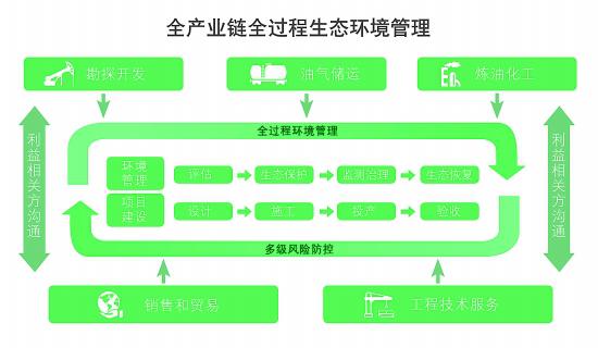 安全生产方面,完善安全管理制度机制,推进安全环保履职能力评估考核,在各专业板块推进基层站队标准化建设;构建风险管控和隐患治理双重预防机制;通过严格筛选、过程控制、能力提升和评价考核,规范供应商、承包商安全生产;建成覆盖全国的水陆立体溢油应急体系,开展海外社会安全四级风险管理。环保方面,开展环境风险识别、评价,建立实施预测、预警、监控的风险防控管理模式;持续加强环境监测能力建设。重视资源保护及合理化使用,进行全产业链水资源管理,在生产作业过程中节约集约用地,严格监控生产过程中废弃物、污染物排放,减少对大气、土地和水污染物排放。