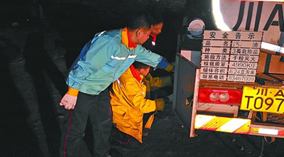 现场应急救援小组不眠不休,确保车辆和设备正常运转