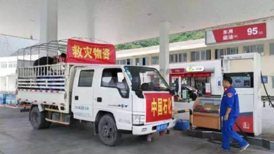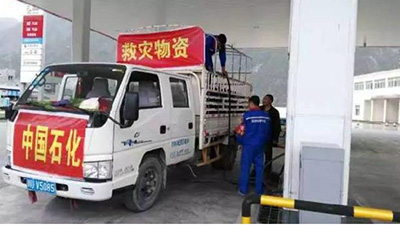 灾情紧急,中国石化四川石油第一时间启动应急预案,立即成立了救援队和应急油品保障小组,紧急行动起来,确保茂县灾区油品稳定供应。立即组织在茂县境内的茂北路和石大关两座加油站开通救灾车辆绿色通道,全力保障救援车辆随到随加;了解加油站内油品库存情况,梳理周边油库资源,确保灾区油品优先配送到位;立即调拨车辆,第一时间将站内油品送往救援前线,为现场实施救援的车辆随时保证油品支援;组织将加油站内的矿泉水、方便食品等非油品,尽快送到现场救援人员手中,为现场抢险助力。