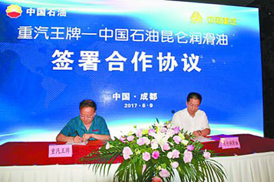 今天,昆仑润滑油与重汽王牌共同签署战略合作协议,真正实现了卡车生产和润滑油业务的强强联合,充分体现了汽车OEM对昆仑品牌的高度认可。相信润滑油公司将从生产、物流、技术以及服务上全力保障重汽王牌的需求,双方可以建立更加紧密的合作伙伴关系,实现优势互补、强强联合、共同发展的美好愿望。