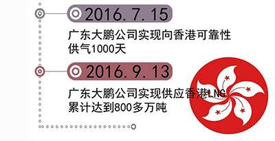 截至2016年10月,从气电集团广东大鹏LNG接收站累计向香港特别行政区安全供气十周年,输送LNG超过800万吨。中国海油的清洁能源从不间断地为香港特区注入“绿色”动力。