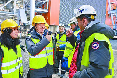 王宜林在亚马尔液化天然气项目现场,为建设者的高速度点赞。