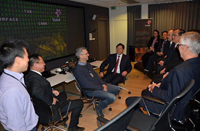王宜林在挪威国家石油公司三维油藏管理中心3D油藏实验室与挪方专家进行交流。孟庆璐摄