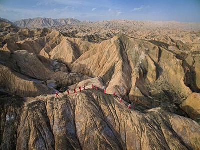 图为山地队员在塔里木吐孜洛克二维地震勘探项目施工。