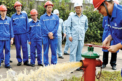 戴厚良在销售华中分公司大庄油库检查防火消防栓水压。