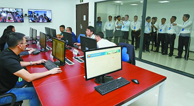 ④与会代表参观刚建成并正式投入运行的中国石油招标中心西北分中心。