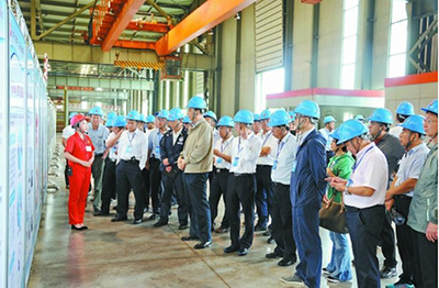 ⑤与会代表参观推行“制造+服务”生产销售模式、实现供需双方互惠共赢的宝鸡钢管西安专用管公司。图片摄影韩杰