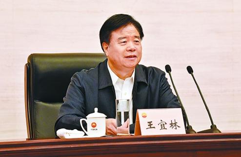 王宜林在2017年办公室主任会议上宣讲党的十九大精神。