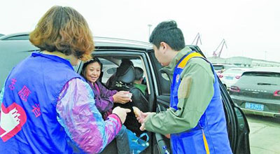 他们收获了尊敬。在志愿者为大家服务的过程中,一位小朋友摇下车窗,给志愿者做一个“比心”手势。