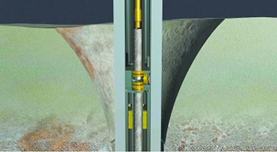 从钻杆中下入的取芯工具开始取芯。
