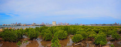 “机器森林”之外,海南炼化成品油码头附近还有一片特殊的树林,是海南炼化员工摄影的好去处。这是一片红树林,面积不大但生机盎然。