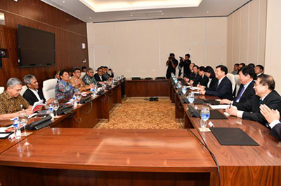 王宜林在雅加达与印尼能源与矿产资源部部长伊格纳修斯·佐南会晤。