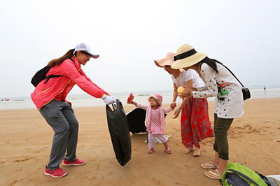 广大青年志愿者们组织开展海洋环保宣传、保护海洋清除垃圾等系列志愿服务。韩庆 摄