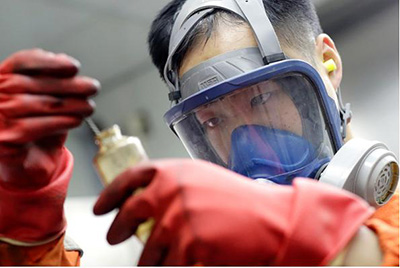 渤海采油平台员工严格监管水质,保证不让一滴不合格的污水入海。杜鹏辉 摄