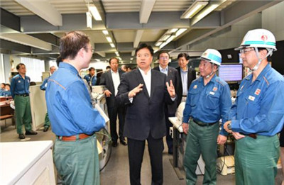 王宜林在大阪炼厂调研,听取有关情况介绍。
