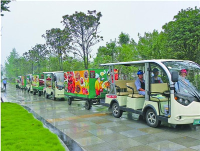 厂区很大,送餐车风雨无阻。