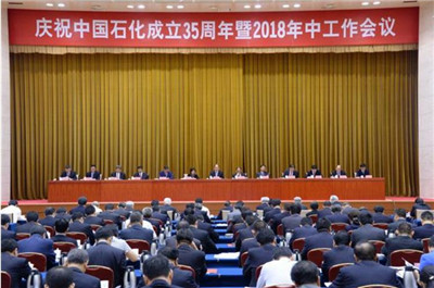 图为庆祝中国石化成立35周年暨2018年中工作会议现场。本报记者 章铮 程阳 摄